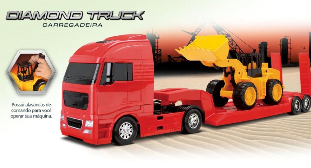 O Diamond Truck é um super caminhão que acompanha uma carregadeira que possui alavancas de comando para operar a máquina.
