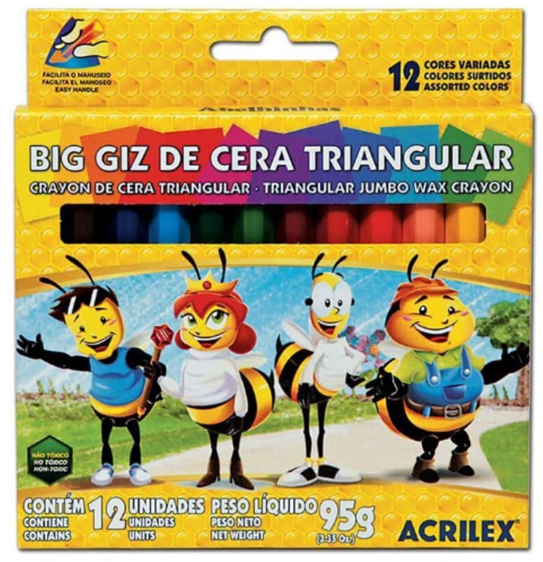 este conjunto de gizão de cera, da acrilex, possui cores vibrantes e é produzido em material de primeira. além disso, os pais