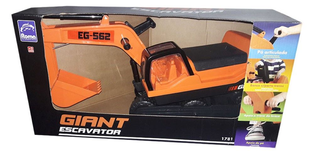 Deixe a brincadeira do seu filho ainda mais divertida com o mini veículo Giant Escavator da Roma Jensen. Com ele, o seu filho vai poder usar a imaginação e criar várias histórias. O mini veículo é ideal para carregar a criança e ainda simular o uso de uma máquina carregadeira. Ele possui movimentos no braço da carregadeira e rodas livres. A Roma Jenses possui anos de trabalho, dedicação e seriedade, e se tornou uma referência no mercado de brinquedos.