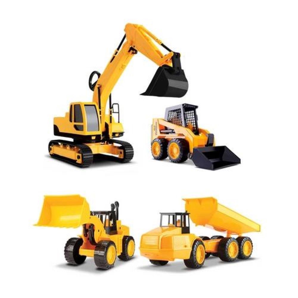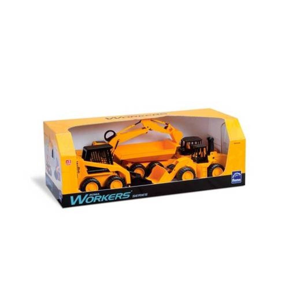 Tratores Roma Workers Series 4 em 1 - Roma Jensen Neste conjunto com as 4 máquinas possuem alavancas de comando para você operar. Basculamento de caçamba para derramar material, articulação frontal com deslocamento pra direita, esquerda, cima e baixo.