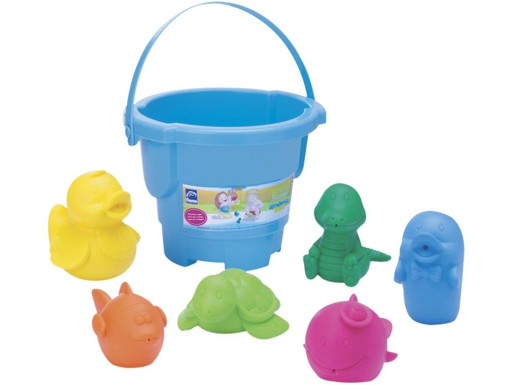 Com o baldinho de praia Bichinhos da Roma Brinquedos as crianças vão se divertir de montão, ele vem com bichinhos de vinil para banho e para brincar na praia.