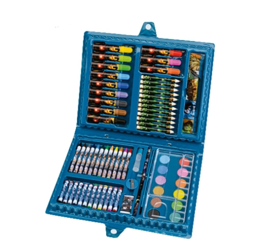 • Conteúdo: 12 Marcadores de colorir, 12 Lápis de cor, 12 Giz de cera, 12 Giz pastel, 12 Pastilhas aquareláveis, 1 Lápis preto HBnº2 ,1 Borracha, 1 Apontador, 1 Pincel, Clips, 1 Régua, 4 Folhas para colorir, 1 Maleta, 1 Recipiente para mistura de tinta.