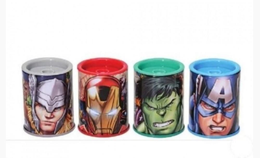 O apontador metálico Vingadores Avengers Marvel trás lindas estampas dos personagens Capitão América, Homem de Ferro, Hulk e Thor. Eles vão garantir que seu lápis esteja sempre apontado. Muito prático para o dia a dia escolar, pois seu depósito é grande e resistente. Complete sua papelaria Marvel!<br><br>