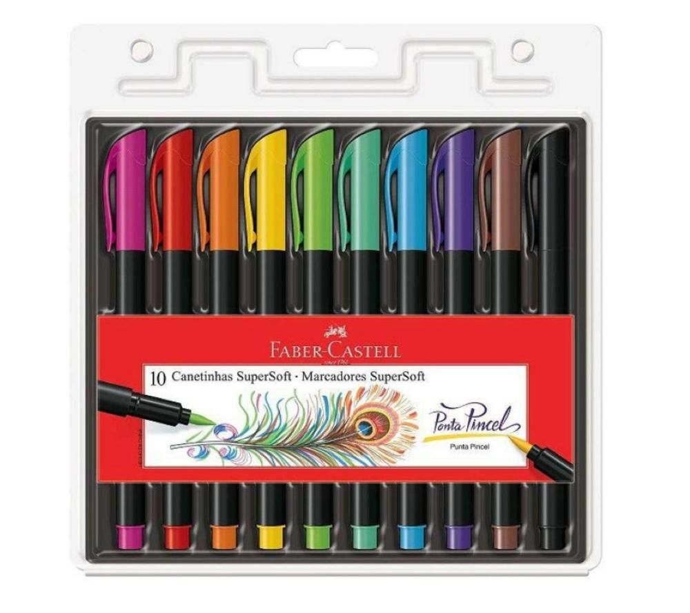 Estojo Com 10 Cores Lindas da Caneta Brush da Faber-Castell Em Tons Pastel. São Perfeitas para a Prática do Lettering! Deixe Seu Caderno Lindo e Colorido Criando Títulos Incríveis!
