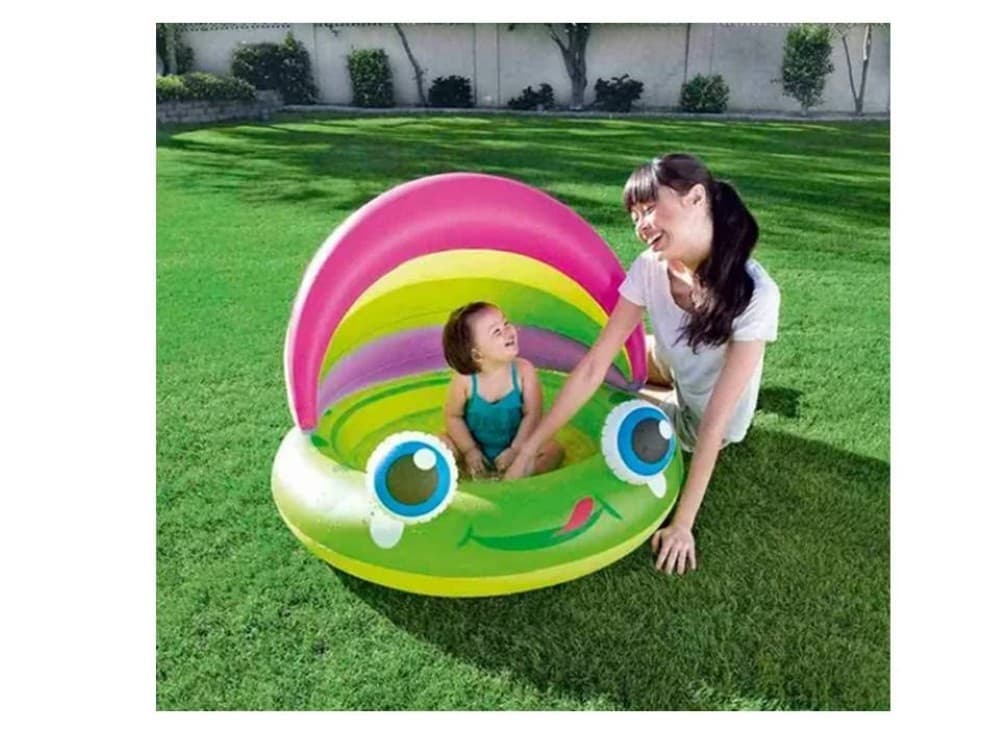 A **Piscina Inflável Mor 001965 Tropical** é perfeita para garantir a diversão dos pequenos nos dias mais quentes. Com design alegre em formato de carinha simpática e cores vibrantes, ela conta com uma cobertura inflável que protege do sol, proporcionando mais conforto e segurança para as crianças.
