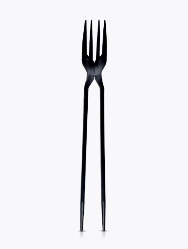 Talher para comida japonesa. Além de prático tem grande utilidade.O garfoshi é um talher que mistura garfo e hashi em um só.