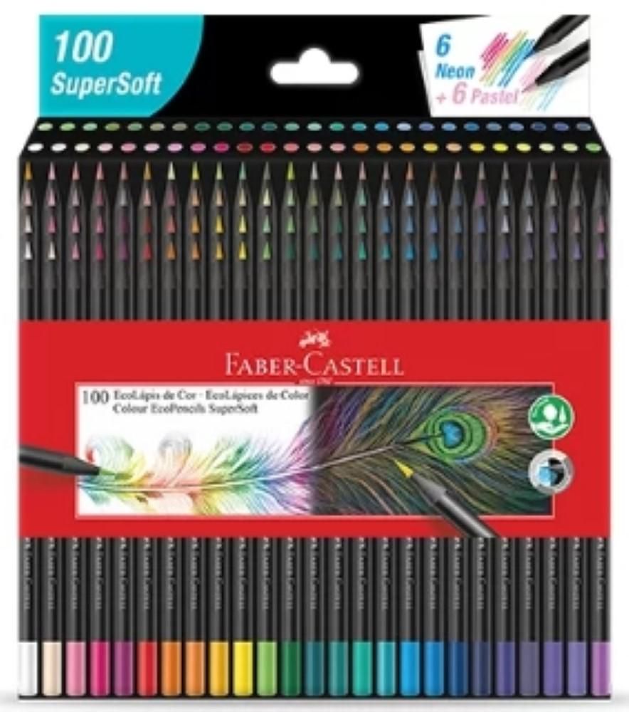 O Ecolápis de Cor Faber-Castell SuperSoft possui a exclusiva mina supermacia, que garante o máximo de conforto ao pintar. O estojo contém 50 cores mais vivas com excelente cobertura, sobre papéis claros e escuros. Além disso, a embalagem é reutilizável e 100% reciclável. Produzido com madeira 100% reflorestada e certificada pelo FSC: respeito ao meio ambiente. ATENÇÃO! Não recomendável para crianças de até 3 (três) anos, por conter parte(s) pequena(s) que pode(m) ser engolida(s) ou aspirada(s). Produto atóxico e não perecível. Características: - Cores incríveis e mais vibrantes - Mina supermacia com maior deposição de pigmento - Embalagem reutilizável e 100% reciclável - Excelente cobertura sobre papéis claros e escuros - Madeira 100% proveniente de manejo florestal sustentável e certificado pelo FSC: respeito ao meio ambiente - Produto atóxico e não perecível Especificações Marca: Faber-Castell Modelo: SuperSoft Código: 1207100SOFT Cores: 100 Cores Produto contém: Estojo com 100 Ecolápis de Cor<br><br>
