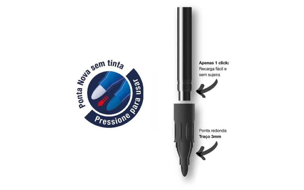 ideal para o uso no ensino escolar, cursos e palestras. pode ser usado em todo tipo de quadro branco e em vidros. características: tinta versátil: pode ser usado tanto em quadro, quanto em vidro cores intensas e vivas que facilitam a leitura a distância pode ficar até 6 horas destampado sem secar ponta: redonda<br><br>