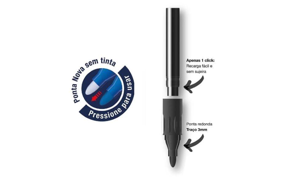 ideal para o uso no ensino escolar, cursos e palestras. pode ser usado em todo tipo de quadro branco e em vidros. características: tinta versátil: pode ser usado tanto em quadro, quanto em vidro cores intensas e vivas que facilitam a leitura a distância pode ficar até 6 horas destampado sem secar ponta: redonda<br><br>