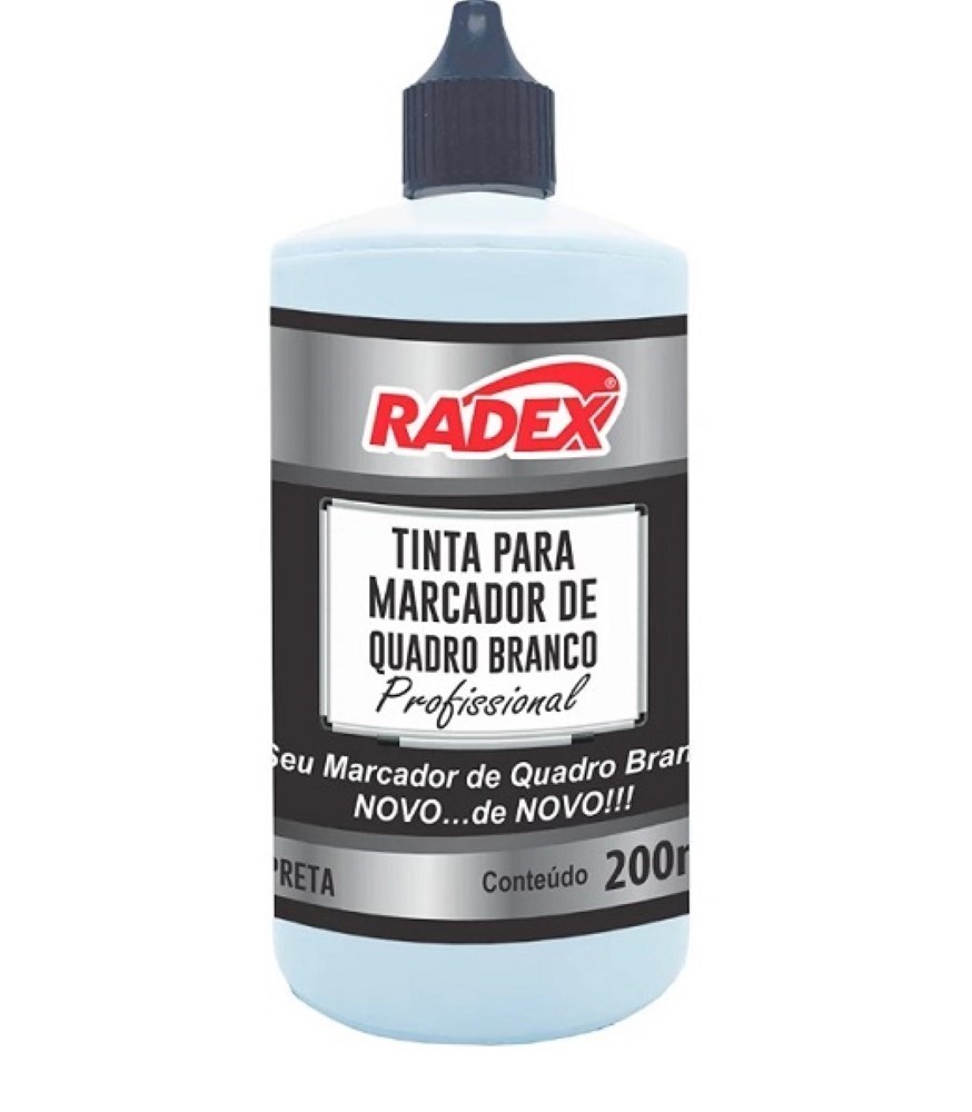 Renove seus marcadores de quadro branco com a Tinta Reabastecedor 200ml Preto, ideal para pincéis recarregáveis Radex.