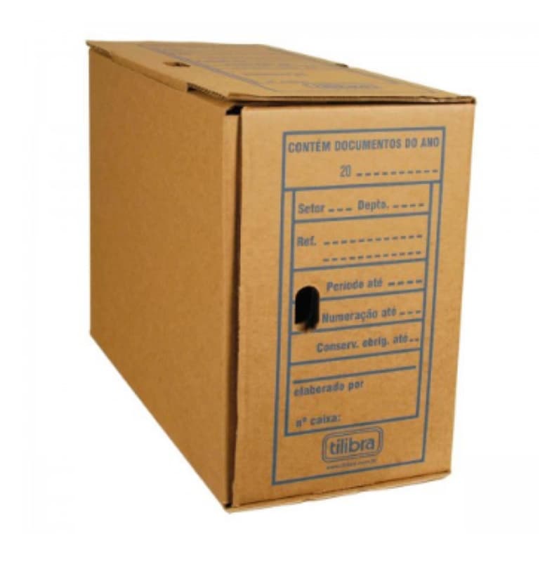 O Arquivo Morto Papelão Jumbo 405x180x292mm armazena e mantém organizado seus comprovantes, contratos e outros documentos com segurança.