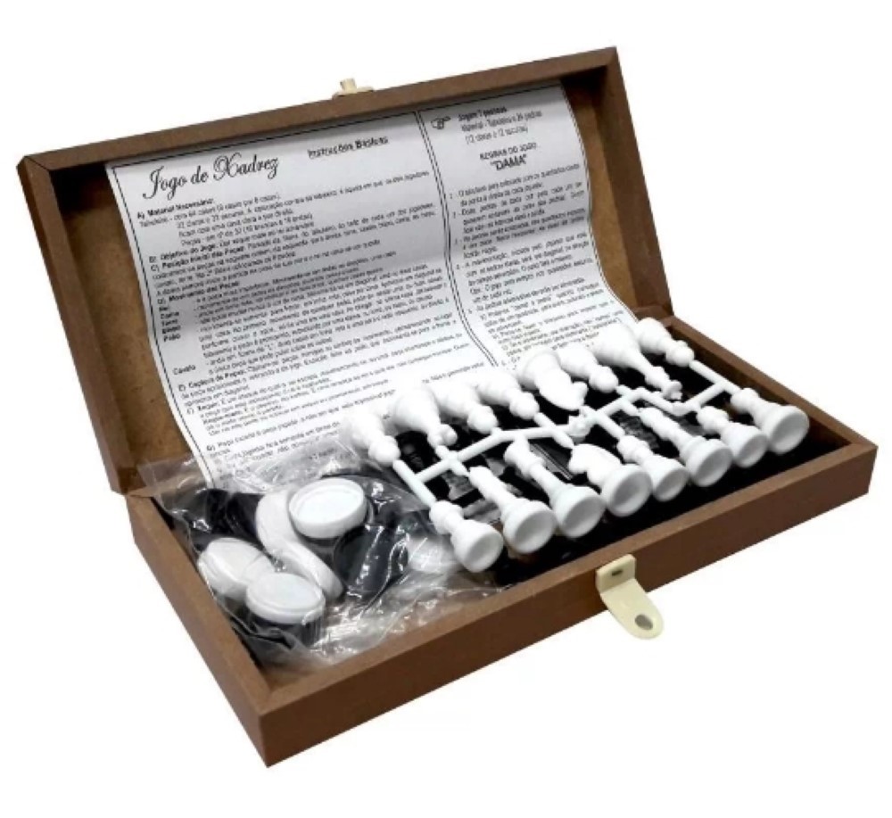 Jogo 2 em 1 Xadrez & Dama Escolar Tradicional jogo onde os participantes testam sua estratégia e inteligência.
