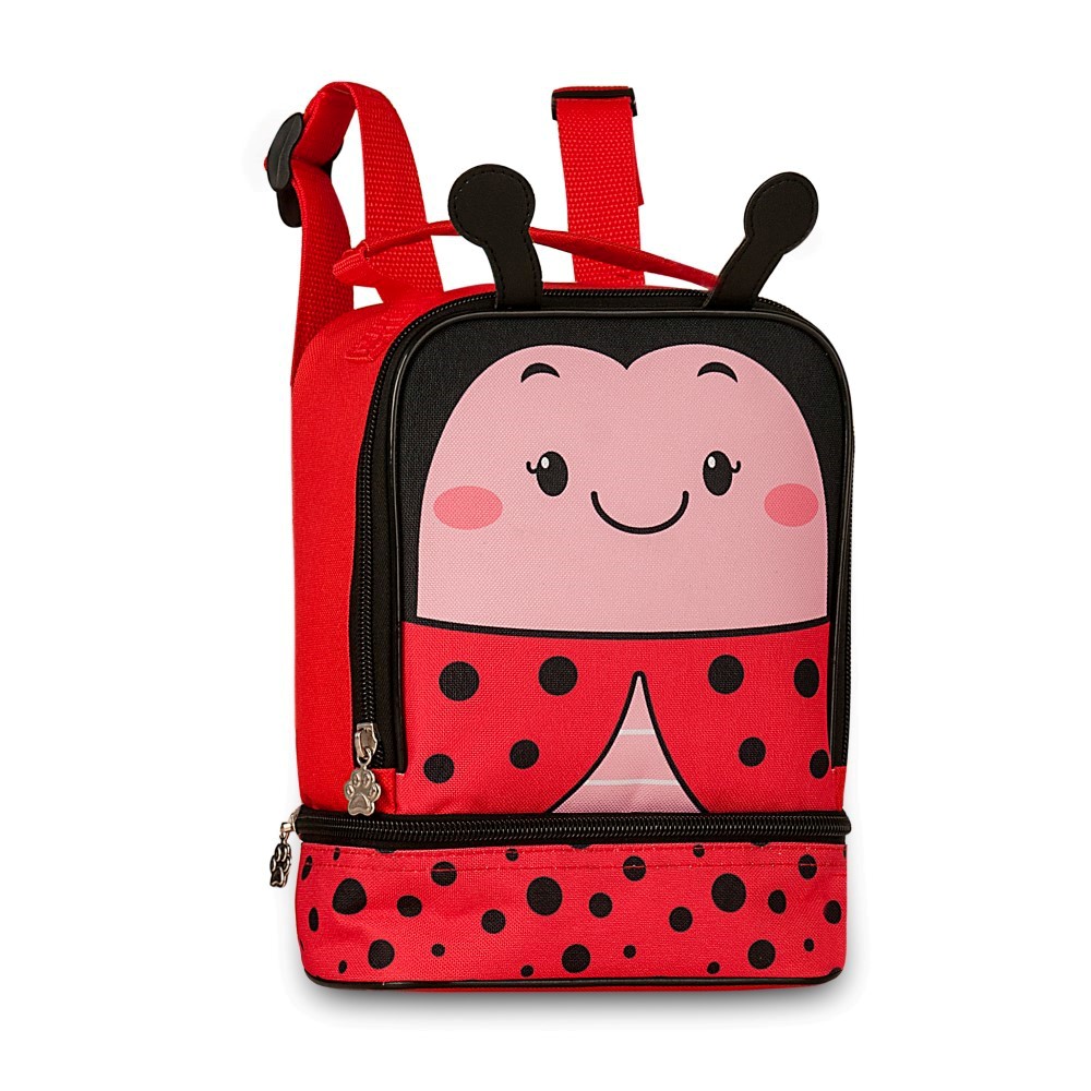 Lancheira confeccionada em poliéster com frente em silk com detalhes em pelúcia e PU.