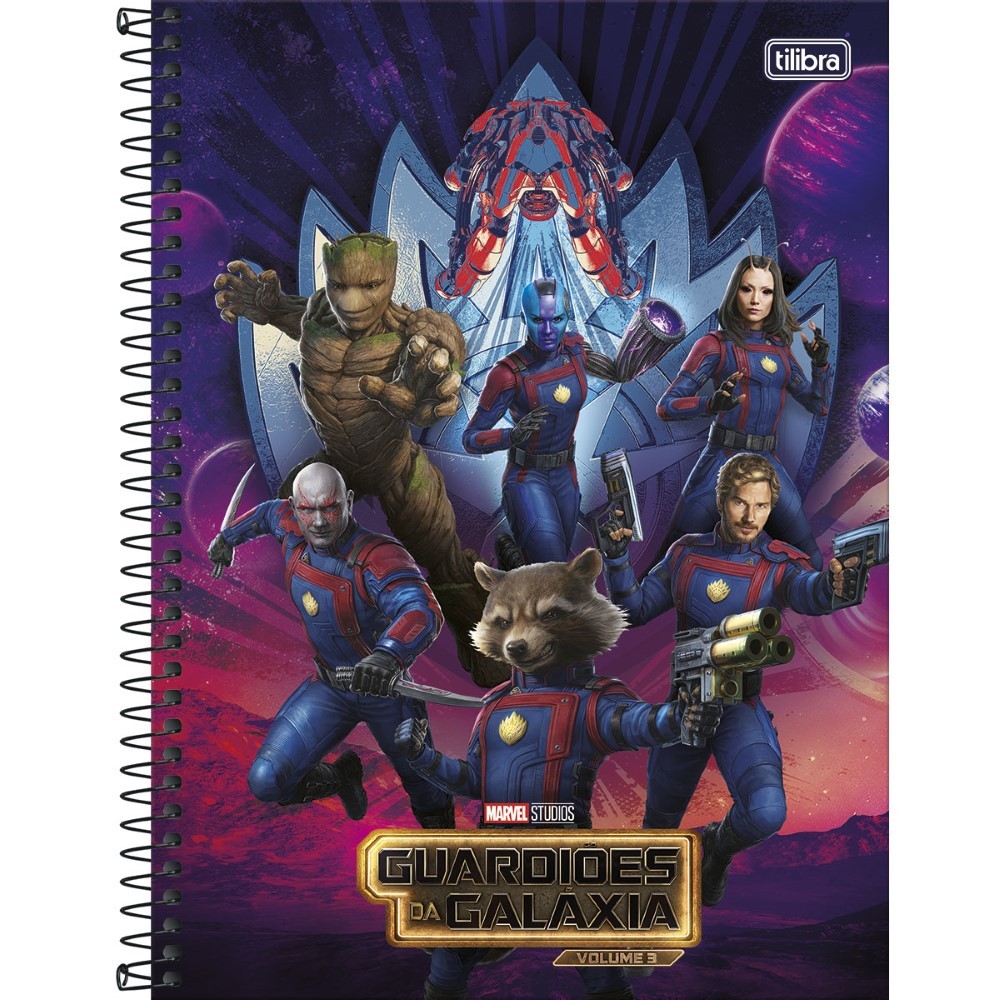 O Caderno Espiral Capa Dura Universitário 1 Matéria Guardiões da Galáxia 80 Folhas possui capa dura com a parte interna decorada, bolsa plástica para guardar trabalhos e anotações, folha com adesivos funcionais, folhas pautadas e espiral colorido. Ideal para o dia a dia na escola ou na faculdade.