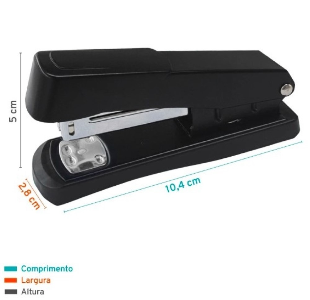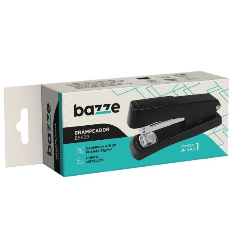O grampeador B5509 possui corpo metálico! Suporta 50 grampos 26/6 e 24/6. Grampeia até 20 folhas! Cor preto.