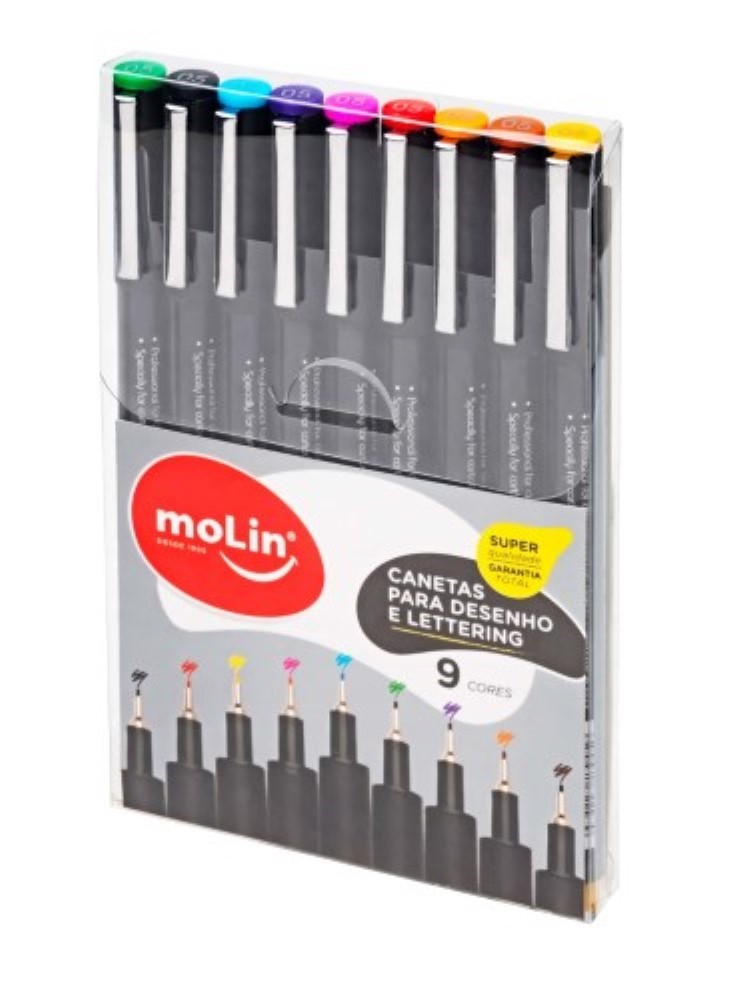 Caneta hidrocores desenho Lettering com 9 cores Molin 05074