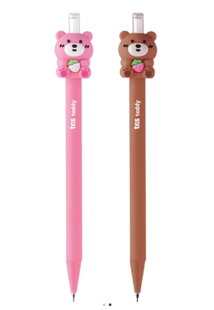 A lapiseira Teddy tem corpo emborrachado e confortável, com toppers super fofos de ursinhos! Seu traço é 0,7mm e está disponível em duas cores: rosa e marrom!