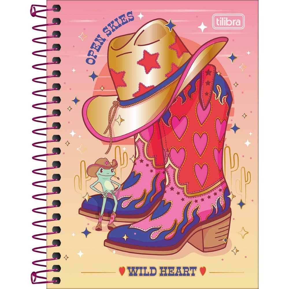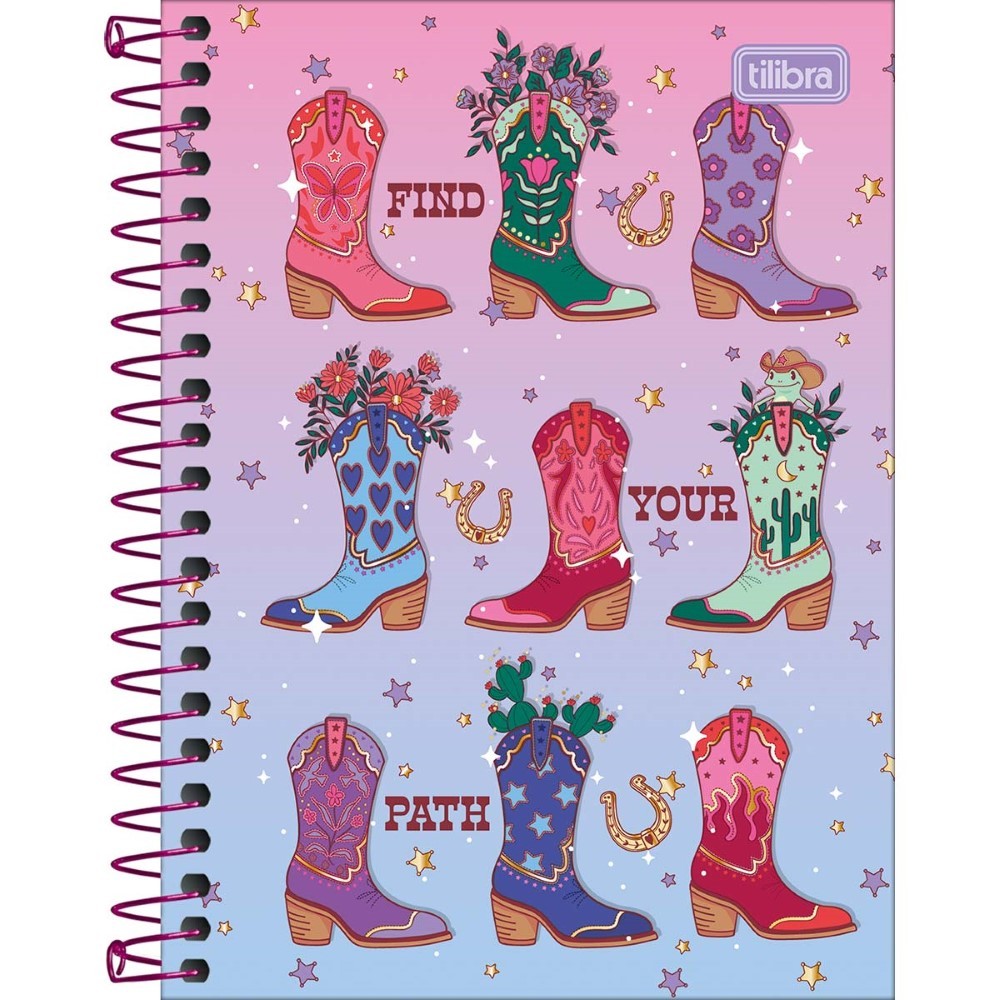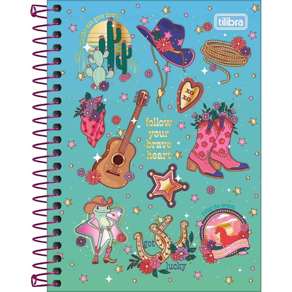 A Caderneta Espiral Capa Dura 1/8 West Girl 80 Folhas possui capa dura com a parte interna decorada, folhas pautadas decoradas e espiral colorido. Ideal para o dia a dia.