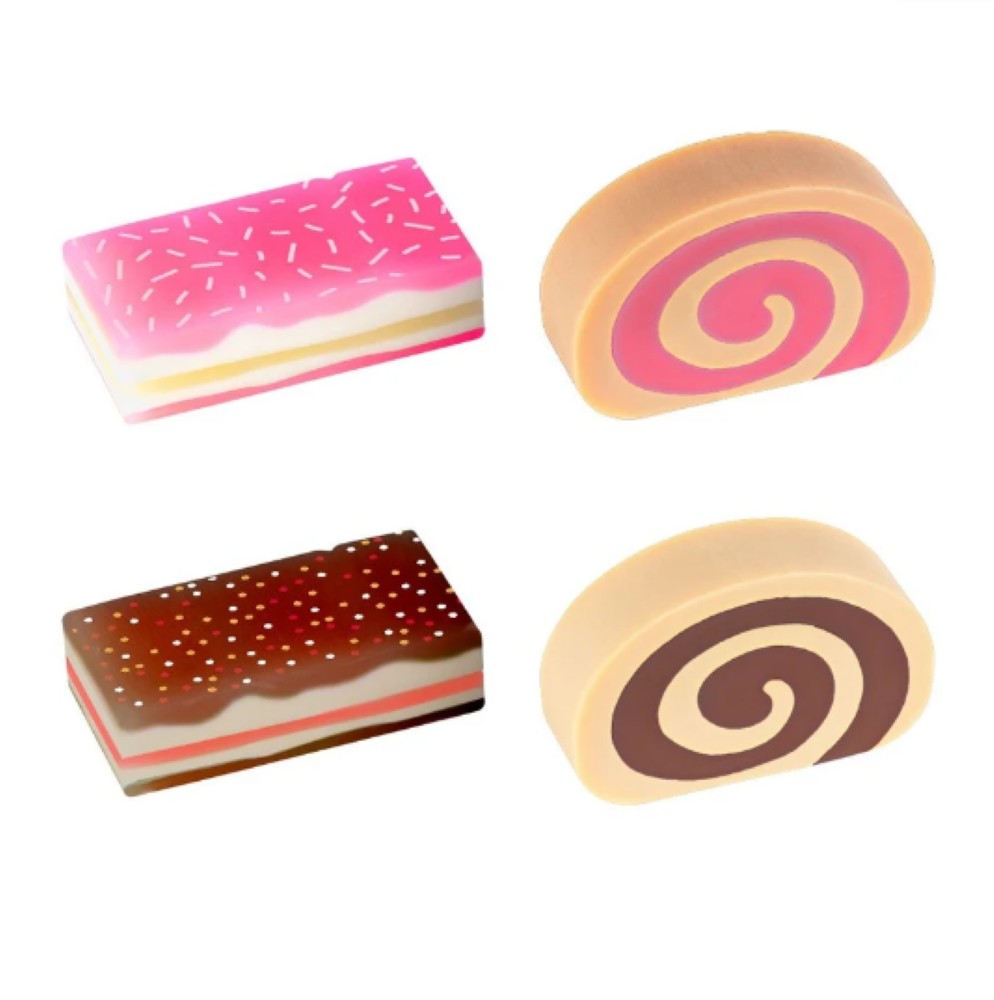 A coleção Docinho traz para as papelarias produtos inspirados nas delícias do universo da confeitaria! Donuts, balinhas, sorvetes e muito mais! É pura fofura! A borracha Bolinhos tem dois formatos de bolos e aromas de chocolate e morango. Com textura SUPER macia e feita com ECO PVC: Não tóxica.