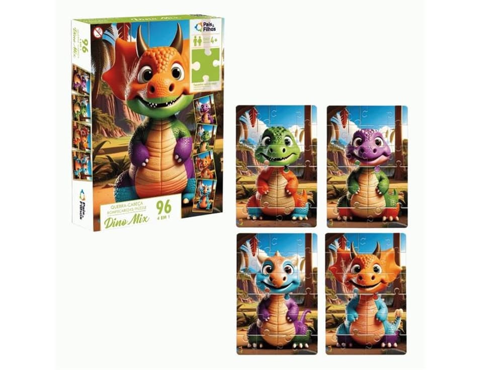O Quebra-Cabeça 96 Peças 4x1 Dino Mix (Ref. 793016) da marca Pais & Filhos é um brinquedo educativo projetado para crianças a partir de 4 anos. Composto por 96 peças grandes e resistentes, o jogo permite montar quatro dinossauros diferentes, estimulando a criatividade e a coordenação motora dos pequenos.