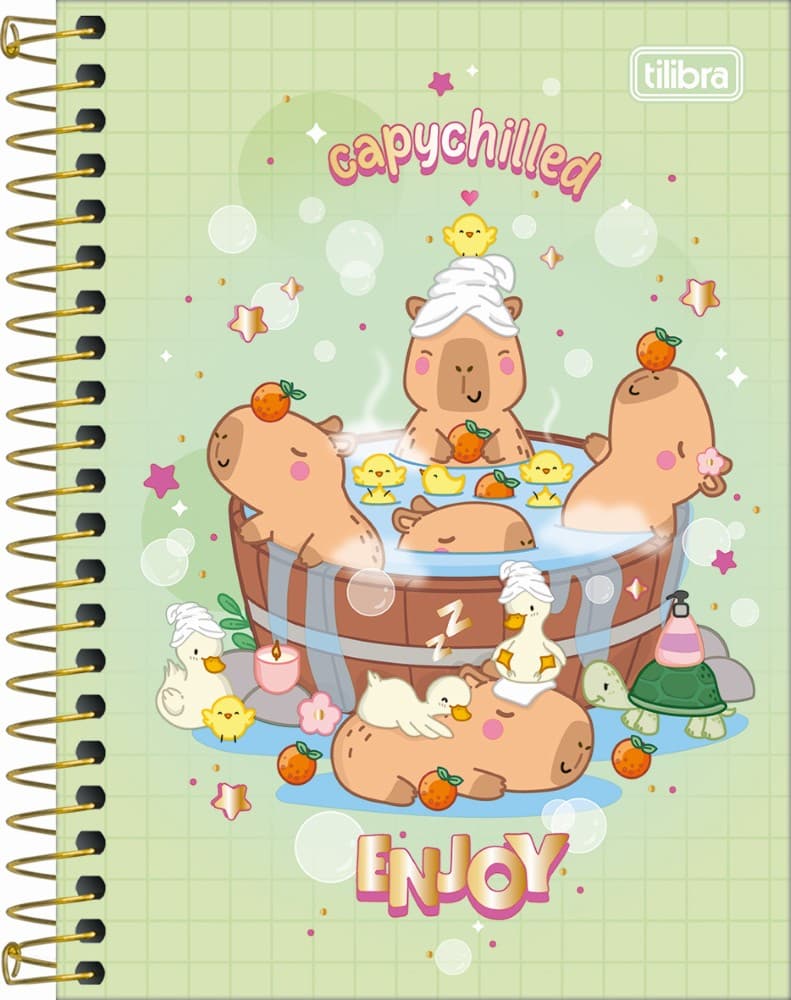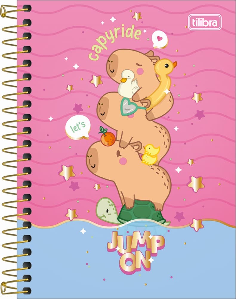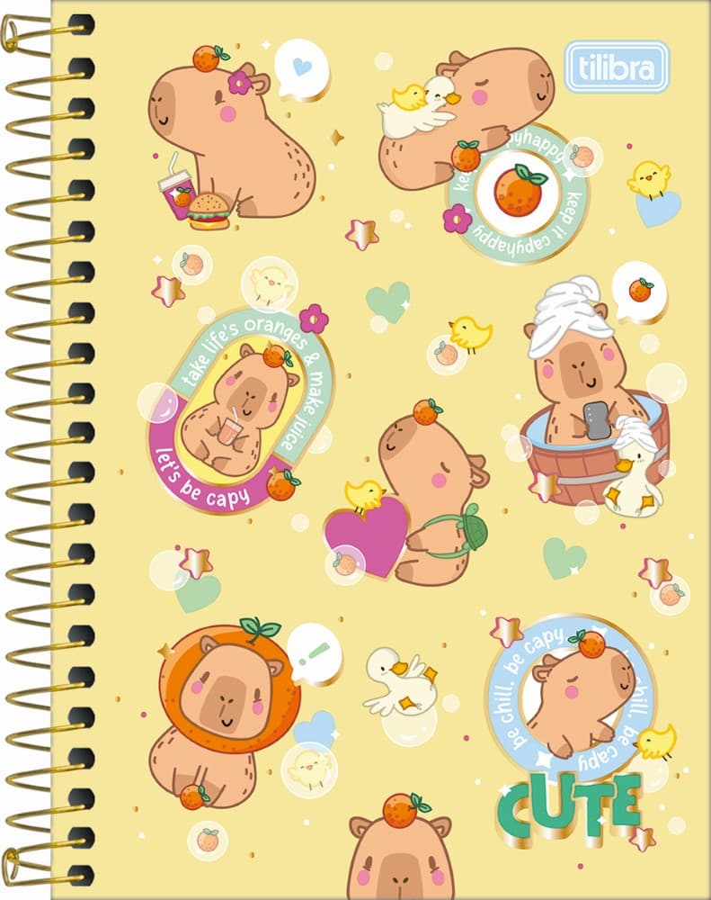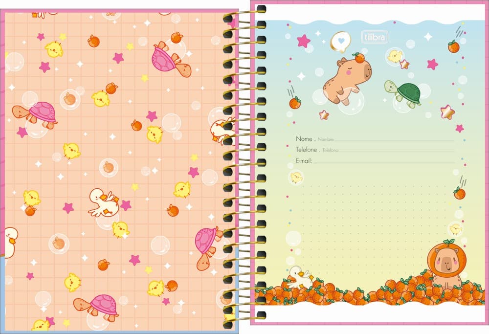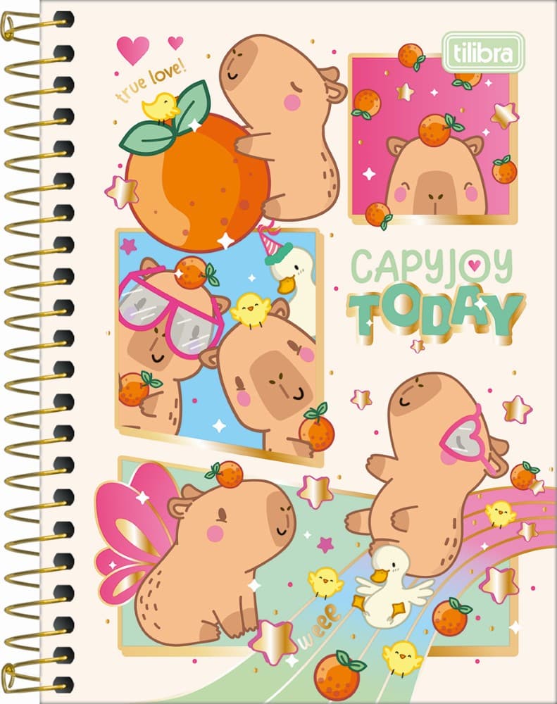 Mini caderneta encantadora da CapyClub, perfeita pra anotações ou organização. Capa dura com espiral colorido, folhas pautadas decoradas e formato compacto que cabe em qualquer bolsa - estilo e fofura unidos num só item!