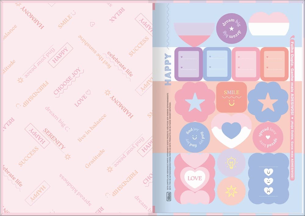 Folhas: 80 folhas pautadas decoradas, gramatura 56?g/m²