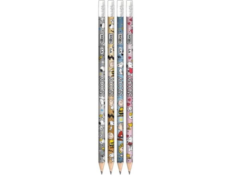 "Já imaginou ter o cachorrinho mais famoso do mundo ao seu lado nos estudos? Isso se tornou possível com o Lápis Preto Redondo com Borracha nº2 Snoopy da Tilibra. O produto, fácil de apontar, resistente e com um traço macio, é ideal para escrita e desenhos. Certificado pelo Inmetro, o lápis preto escolar da Tilibra vem unitário com 190 mm de comprimento, borracha na ponta e corpo redondo, com efeito metalizado e estampa do Snoopy.