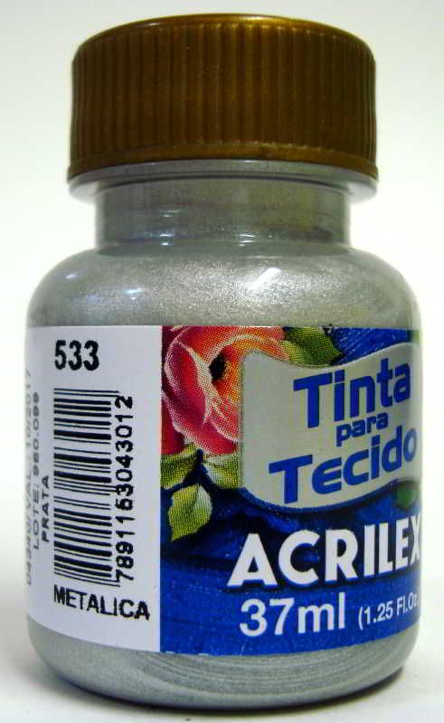 tinta para tecido 37ml metálica - 533 prata acrilex