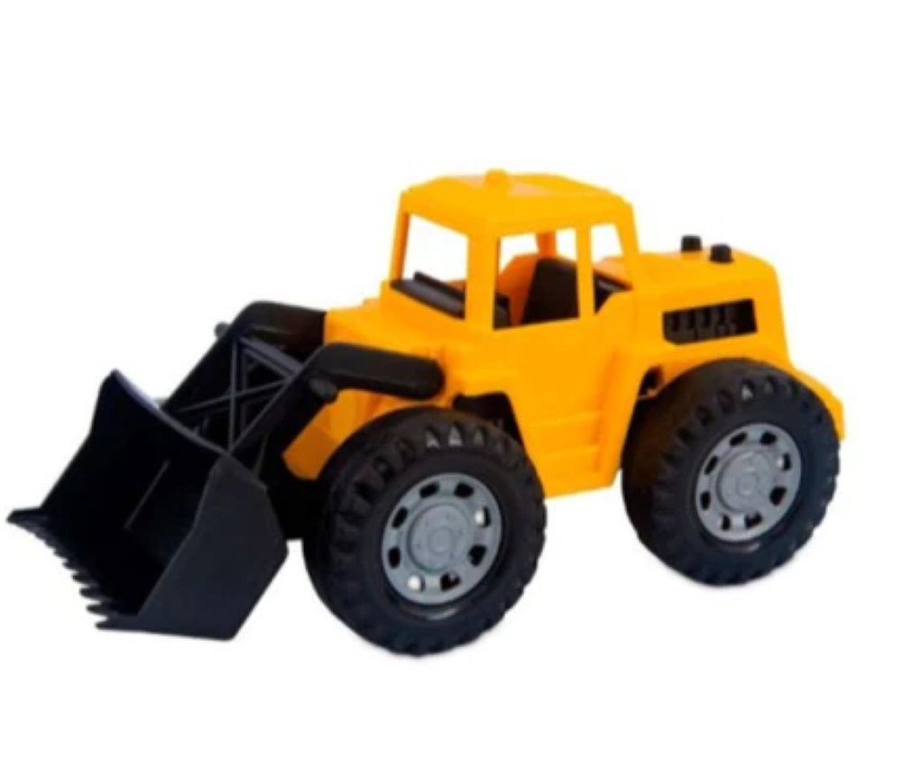 Funções Interativas: A caçamba da carregadeira pode ser movimentada manualmente para carregar e descarregar materiais simulados, estimulando a imaginação da criança e promovendo a coordenação motora.