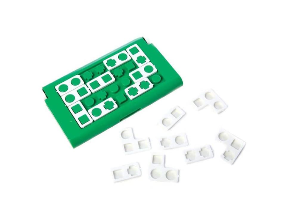 * Cartelas ou painel interno do estojo com **50 desafios** de montagem diferentes.