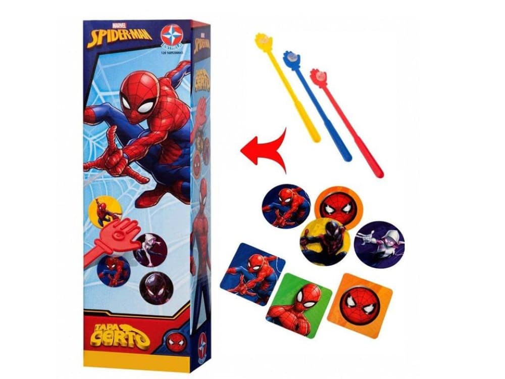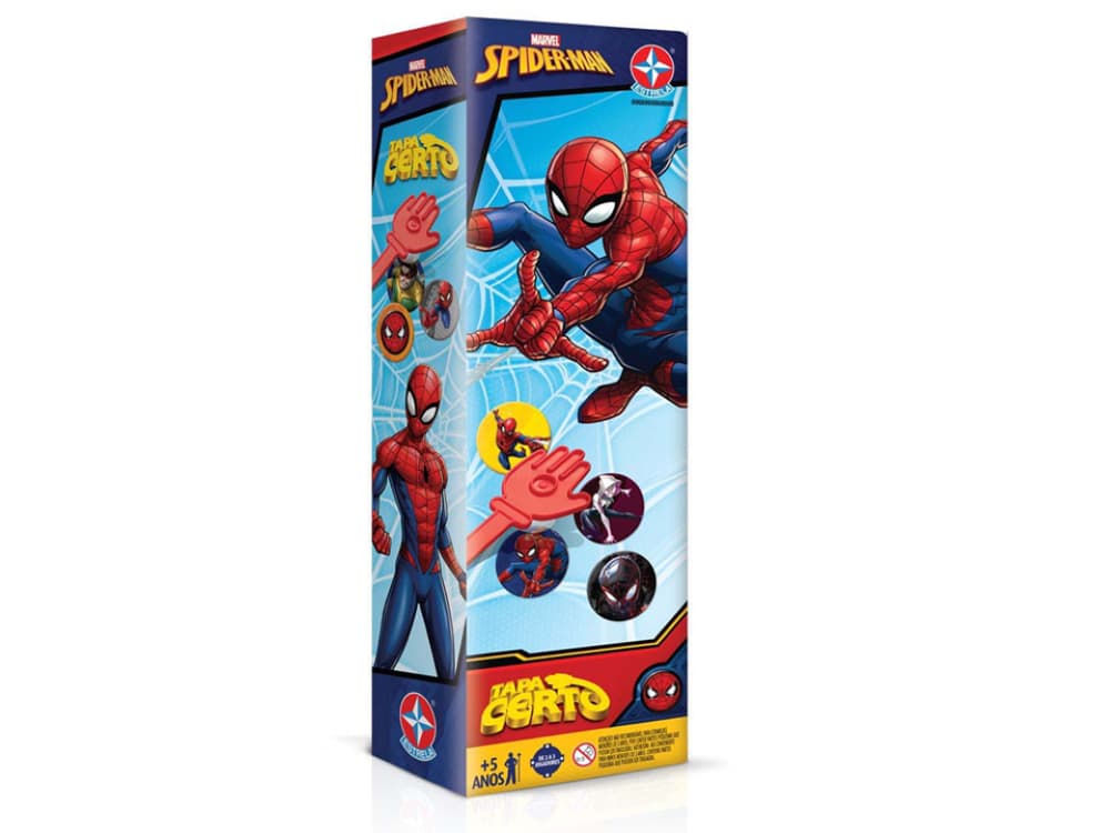 O clássico Tapa Certo com os personagens do Spiderman. Divirta-se pegando as imagens deles com as "mãozinhas" com ventosas!