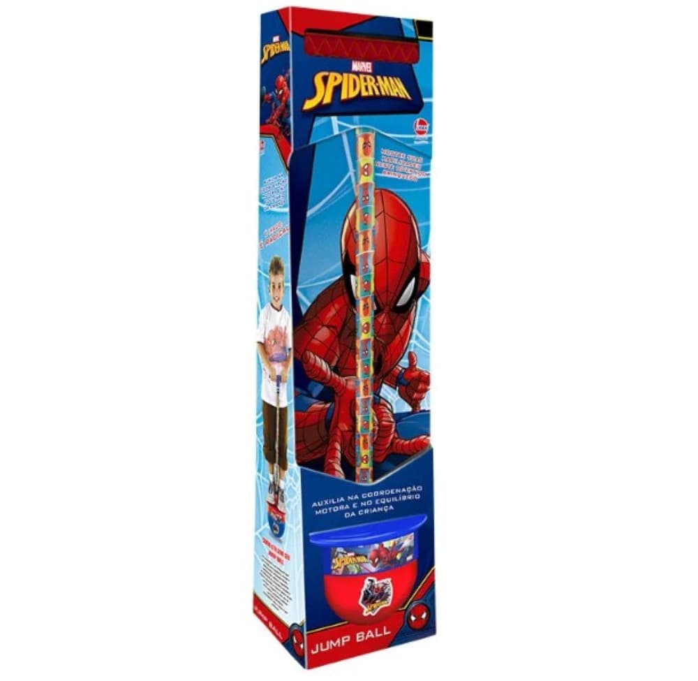 Pula-Pula Infantil - Jump Ball - Marvel - Homem-Aranha - Líder Brinquedos: os verdadeiros fãs do Spider-man podem se divertir de montão pulando com o Jump Ball do Homem Aranha. Esse brinquedo incentiva a criança na prática de atividade física e auxilia no desenvolvimento da coordenação motora e equilíbrio durante a brincadeira. A utilização do Jump Ball é muito simples e segura. Com base antiderrapante e uma bola em vinil super resistente, também conta com válvula que ajuda a criança a se equilibrar quando pula. Jump Ball, como pular? • A criança coloca os pés a base do brinquedo e segura o cabo com as duas mãos. Após isso, basta impulsionar e sair pulando para se divertir. Jump Ball, idade recomendada? • O Jump Ball é indicado para crianças a partir de 5 anos de idade O Jump Ball aguenta quantos quilos? • O Jump Ball do Homem Aranha suporta uma criança de até 85 kg Informações: • Produto: Jump Ball Spiderman • Marca: Líder Brinquedos • Coleção: Homem-Aranha (Spiderman) • Tipo: Brinquedo de pular • Categoria: Bolas de Pular Individual • Tamanho (C x A x L): 23 x 92 x 23 cm • Peso máximo suportado: até 85 kg • Conteúdo: 01 Jump Ball • Recomendação: para crianças a partir de 05 anos de idade Especificações: • Referência: 359 • Código de barras: 7898125113599 • Embalagem (C x A x L): 27 x 95 x 25 cm • Embalagem (Peso): 1.5 kg • Material / Composição: Plástico • Certificado: Órgãos Autorizados - OCP ´S (Organismos de Certificação de Produtos) Benefícios de brincar: • Eleva a autoestima • Exercita a memória • Estimula o raciocínio • Exercita o imaginário • Desenvolve a criatividade • Desenvolve percepção visual • Desperta a atenção e curiosidade • Desenvolvimento neuropsicológico • Estimula habilidades motoras básicas • Incentiva a comunicação e linguagem • Desenvolve aspectos emocionais e afetivo • Estimula o reconhecimento de formas e cores Aviso: • As imagens são meramente ilustrativas • Os pesos, tamanhos e medidas são aproximados • As cores e estampas dos produtos podem ter variações • As informações são de responsabilidade do fabricante ou fornecedor