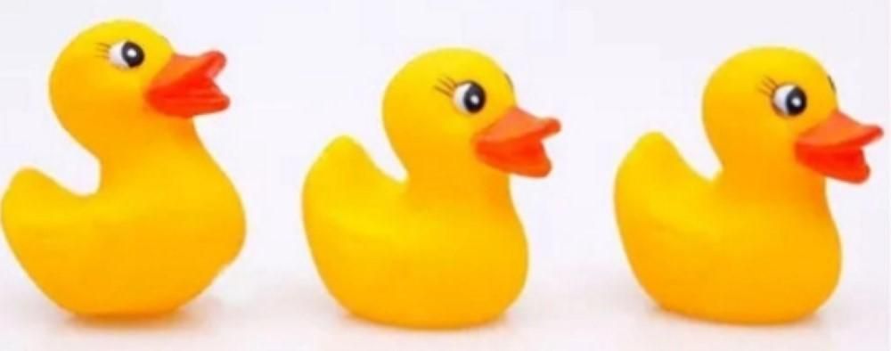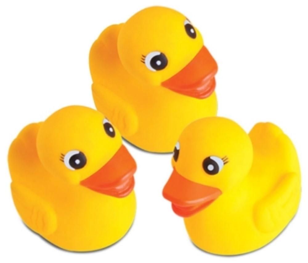 Caixa com 3 patinhos de borracha