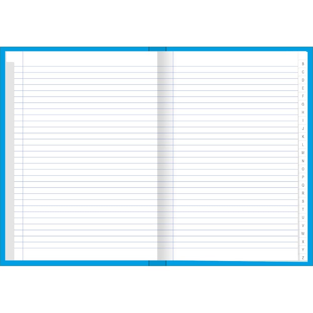 O Caderno Brochura Capa Dura 1/4 com Índice D+ Azul 96 Folhas possui capa dura na cor azul, área para identificação e folhas pautadas divididas em índice alfabético. Ideal para organização dos contatos pessoais e profissionais.