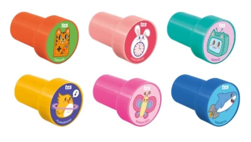 O Carimbo Animalucos chegou para conquistar e carimbar todos os cadernos! Carimbo autotintado com reservatório interno de tinta. São 6 diferentes opções de personagens exclusivos da Tris e inspirados na imaginação das crianças.