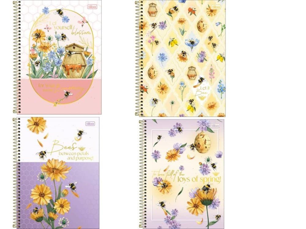 O Caderno Espiral Capa Dura Universitário 10 Matérias Honey Bee 160 Folhas possui capa dura com a parte interna decorada, bolsa de papel decorada para guardar trabalhos e anotações, folha com adesivos funcionais, folhas pautadas decoradas e espiral colorido. Ideal para o dia a dia na escola ou na faculdade.