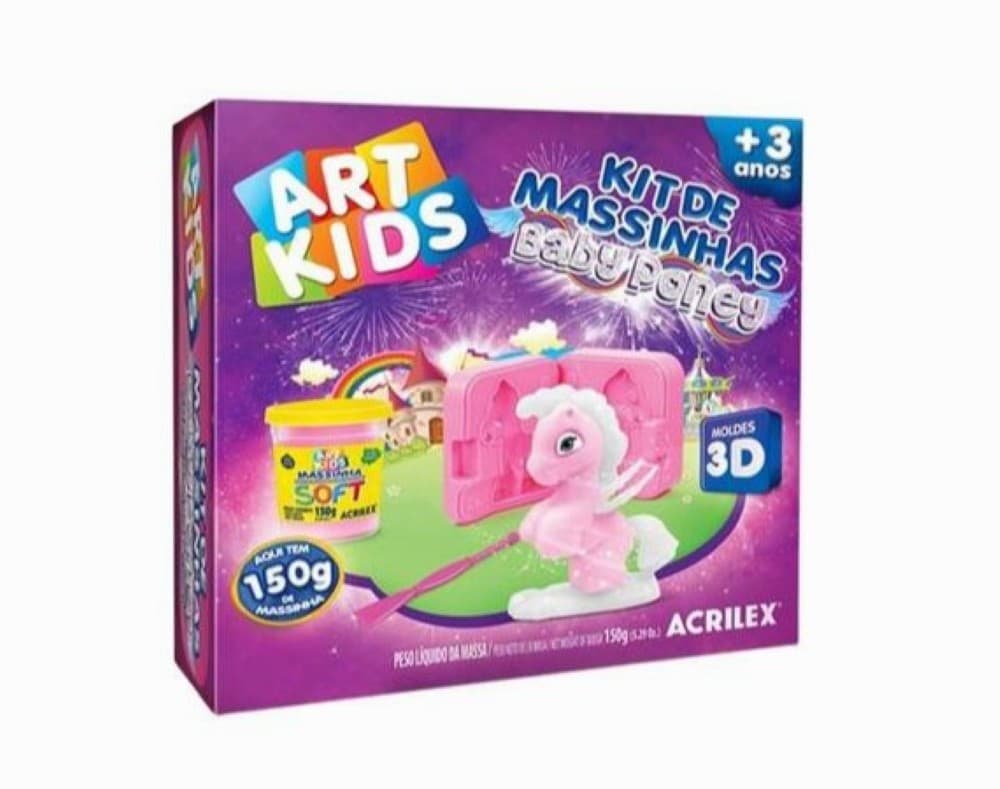 O Kit Massinha Baby Poney 3x150g é um brinquedo educativo que estimula a criatividade, imaginação e coordenação motora das crianças. Com tema Baby Poney, permite criar pôneis, acessórios e cenários divertidos usando massinha de modelar macia e segura.
