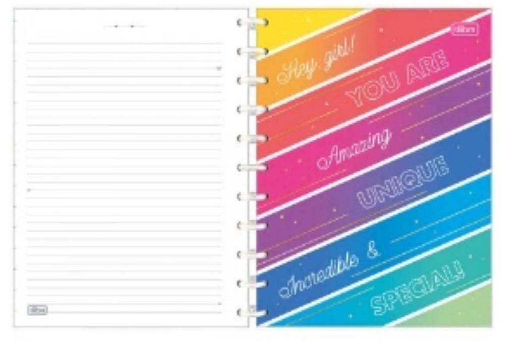 Caderno Universitário Tilidisco 1 Matéria Be Nice 80 Folhas possui capa e contracapa flexíveis, com acabamento metalizado, que podem ser utilizadas dos dois lados. O produto tem camada extra de proteção feita por uma sobrecapa plástica, com acabamento metalizado, e uma contracapa plástica.