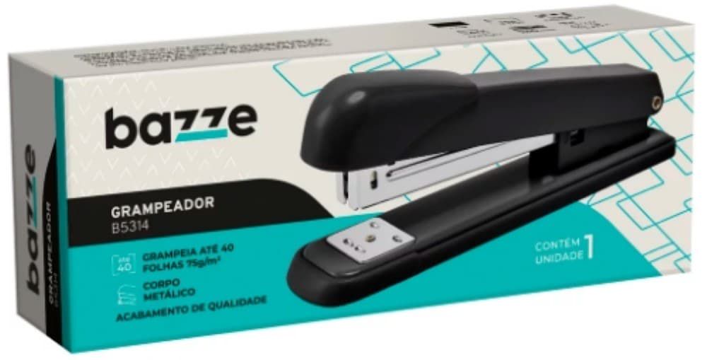 O grampeador B5314 possui corpo metálico! Suporta 100 grampos 26/6 e 24/6. Grampeia até 40 folhas! Cor preto