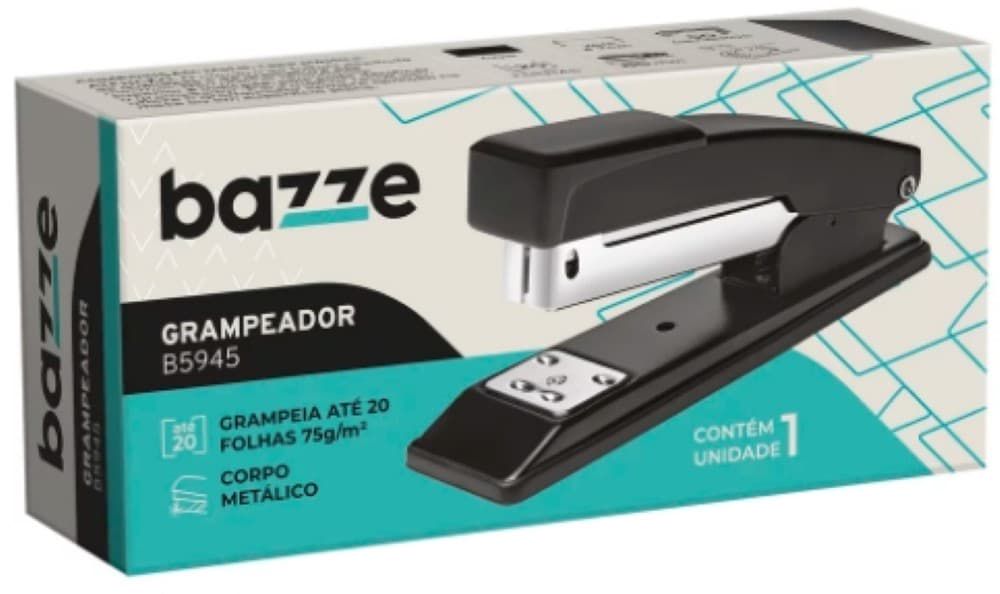 O grampeador B5945 possui corpo metálico! Suporta 50 grampos 26/6 e 24/6. Grampeia até 20 folhas! Cor preto