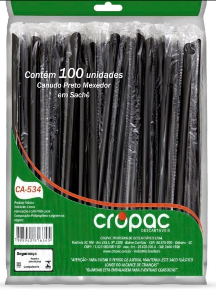 canudo biodegradável da marca Cropac, vendido em embalagem com 100 unidades.