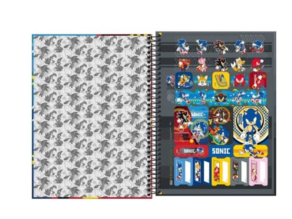O Caderno Espiral Capa Dura Universitário 1 Matéria Sonic 80 Folhas possui capa dura com detalhe metalizado, parte interna decorada, bolsa plástica para guardar trabalhos e anotações, folha com adesivos funcionais, folhas pautadas e espiral colorido. Ideal para o dia a dia na escola ou na faculdade.