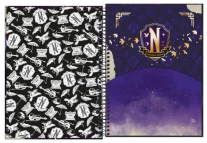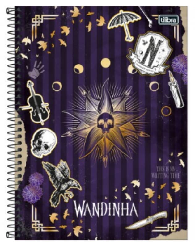O Caderno Espiral Capa Dura Universitário 1 Matéria Wandinha 80 Folhas possui capa dura com acabamento metalizado, parte interna decorada, bolsa de papel decorada para guardar trabalhos e anotações, folha com adesivos funcionais e folhas pautadas. Ideal para o dia a dia na escola ou na faculdade.