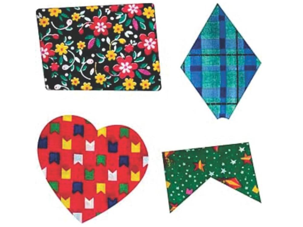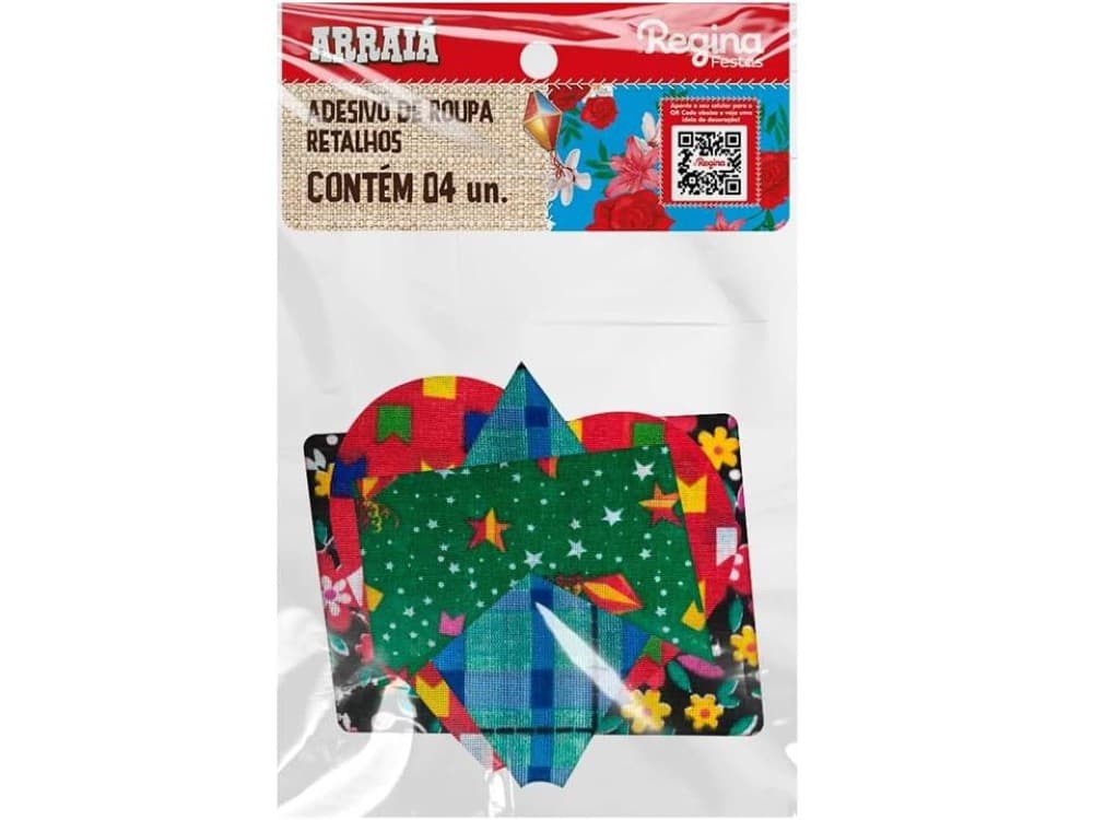 Os retalhos adesivos são acessórios decorativos para customização de roupas com temática junina, ideais para dar um toque especial e festivo em trajes típicos de festa junina, quadrilha ou eventos escolares.