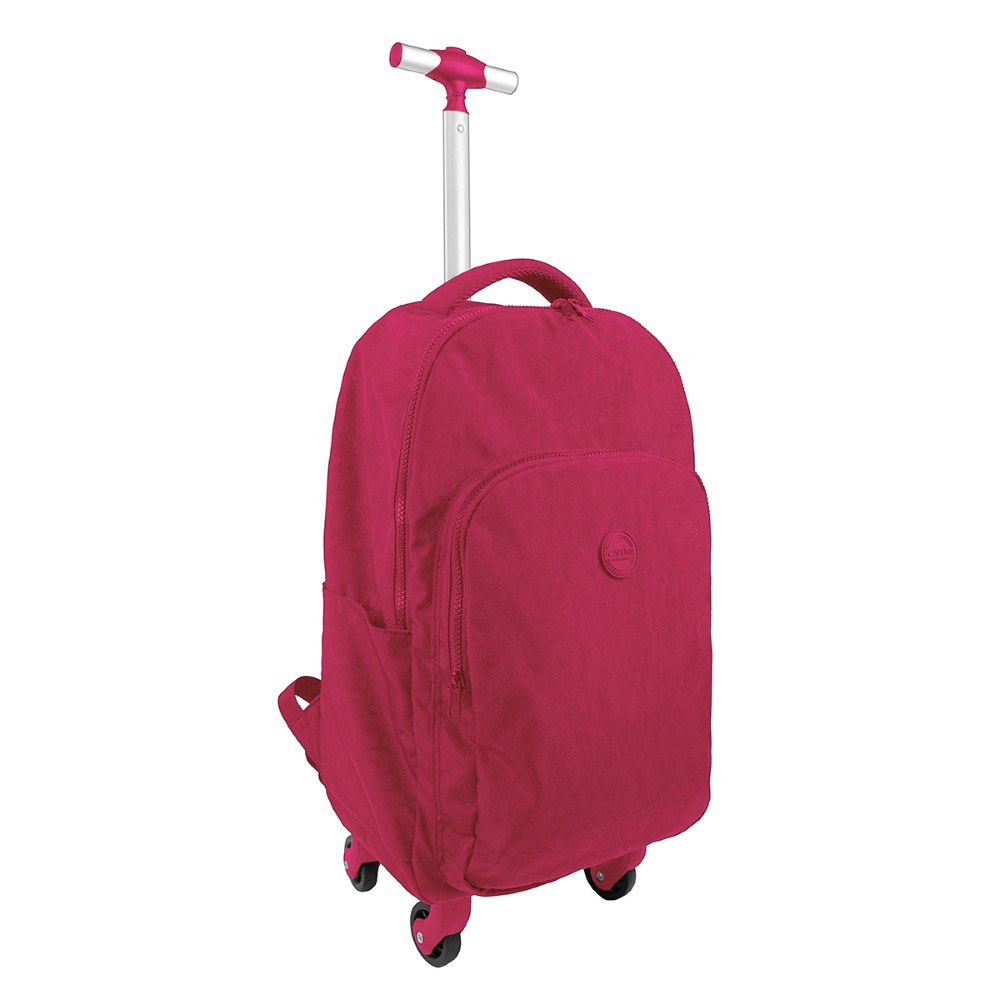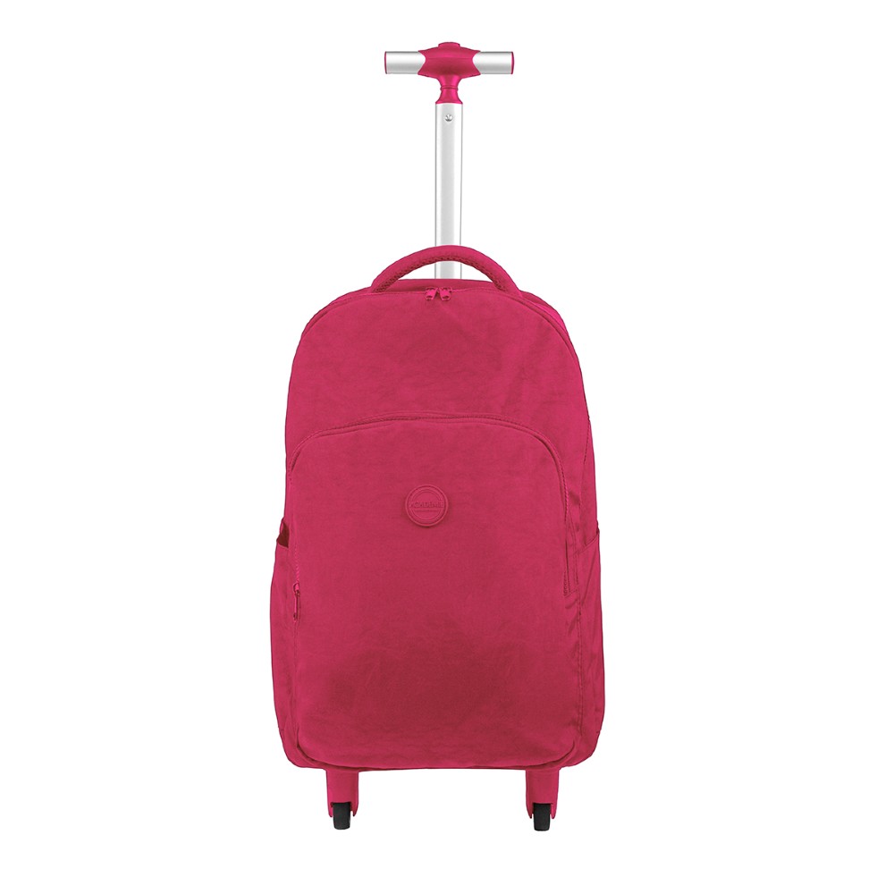 A Mochila de Rodinhas Académie conta com base reforçada, com parte interna forrada e alças acolchoadas. Este modelo tem dois compartimentos, uma abertura principal e um bolso externo, ambos com fechamento em zíper, puxador de metal e rodas 360 graus. práticas.