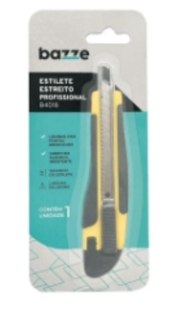 O estilete B4018 possui estrutura metálica e grip emborrachado em formato ergonômico para maior conforto, de lâmina estreita e com tratamento antiferrugem.