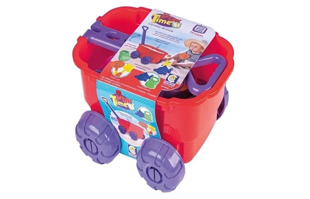 Play Time Carrinho de Praia - o carrinho vem com alça e você pode encher com água ou areia.