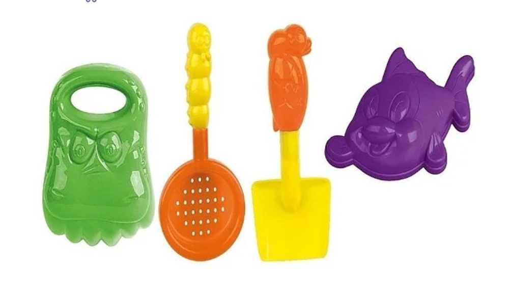 Acessórios: forminha de bichinhos, peneira e pá.