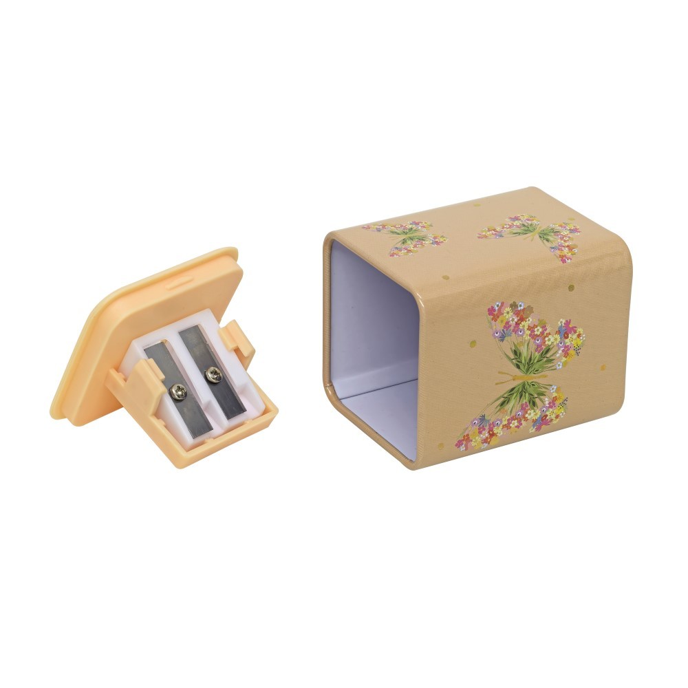 Apontador com depósito Molin Borboletas é produzido com material durável (corpo em metal), lâmina em aço carbono resistente e possui depósito em metal. Além de ter estampas lindas de Borboletas para alegrar e auxiliar o seu dia.