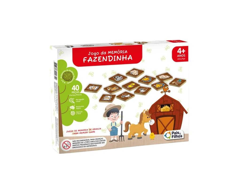 Descubra a diversão e o aprendizado com o Jogo da Memória Fazendinha em MDF da Pais e Filhos! Com 40 peças lindamente ilustradas, este jogo é perfeito para crianças a partir dos 4 anos, ajudando a desenvolver a memória, concentração e habilidades motoras. As peças duráveis em MDF garantem horas de entretenimento educativo, transportando os pequenos para o encantador mundo da fazenda.